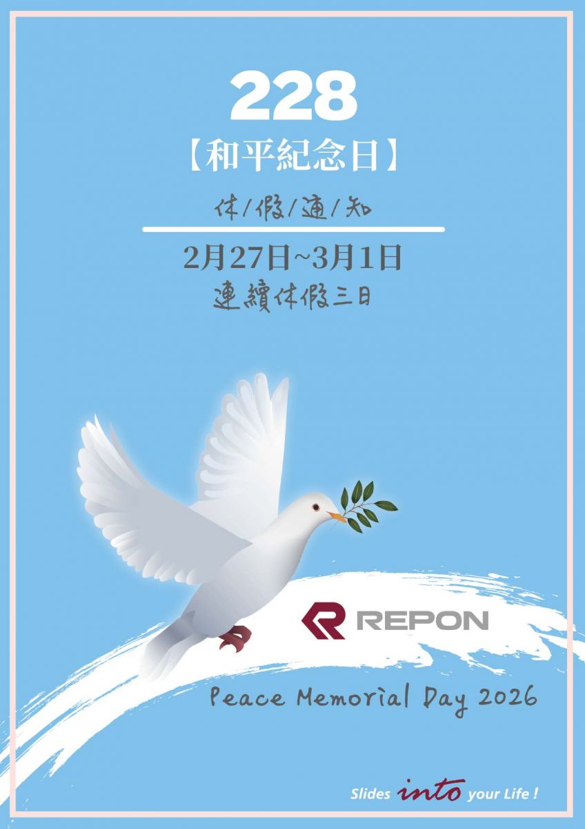 REPON 自 2/27 ~ 3/1 為 228 和平紀念日連續休假三日,我們將在 3/2重新為您服務。